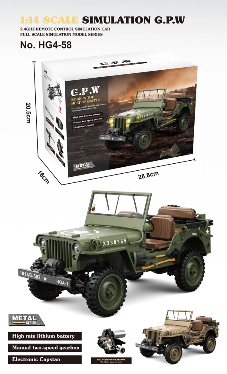 EZ 1/14 HG4-58 4WD Climbing Electric Remote Control Model Electric Car Simulation Military Truck Adult Children's Toy