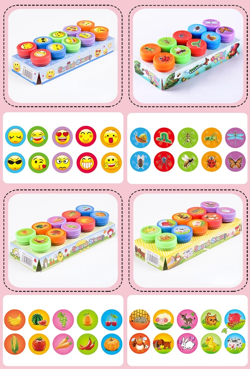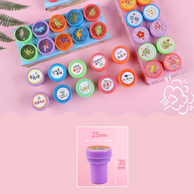 EZ 10pcs Stamps Cartoon Smiley Face Kids Self-ink Stamps Children Toy for Scrapbooking Seal Stamper DIY Painting Photo Album Decor