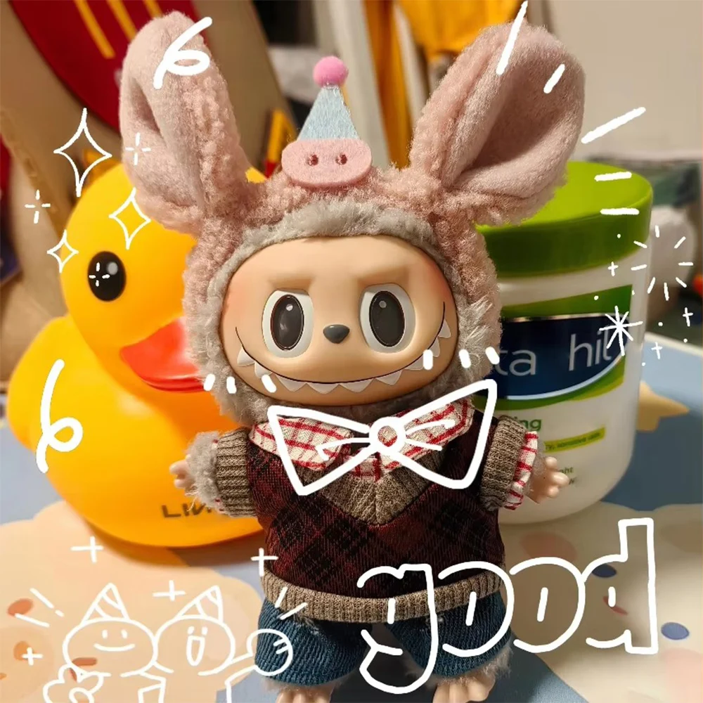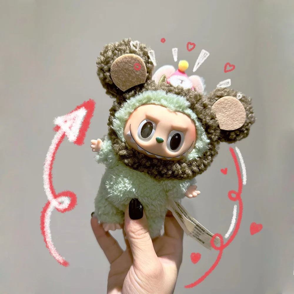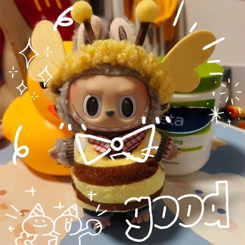 EZ 17cm Labubu Doll Cartoon Hair Ornament Cute Bee Elephant Little Bear Little Pig Labubu Hair Ornament