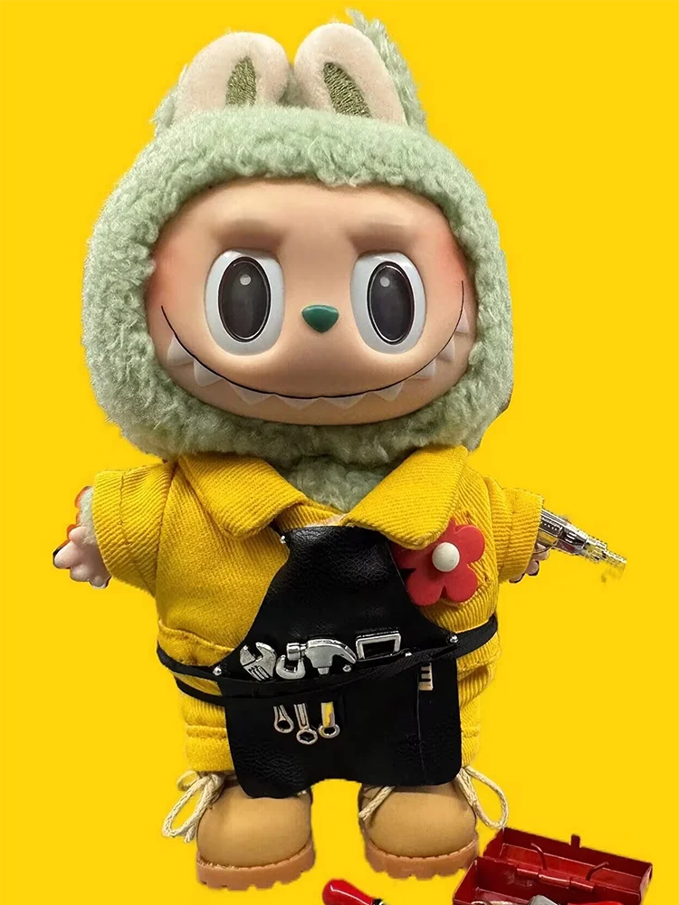 EZ 17cm Labubu Repairman Apron Ob11 Clothes 10cm Cotton Doll Bib Bjd Doll Accessories Mini Repair Tools Cute Toys