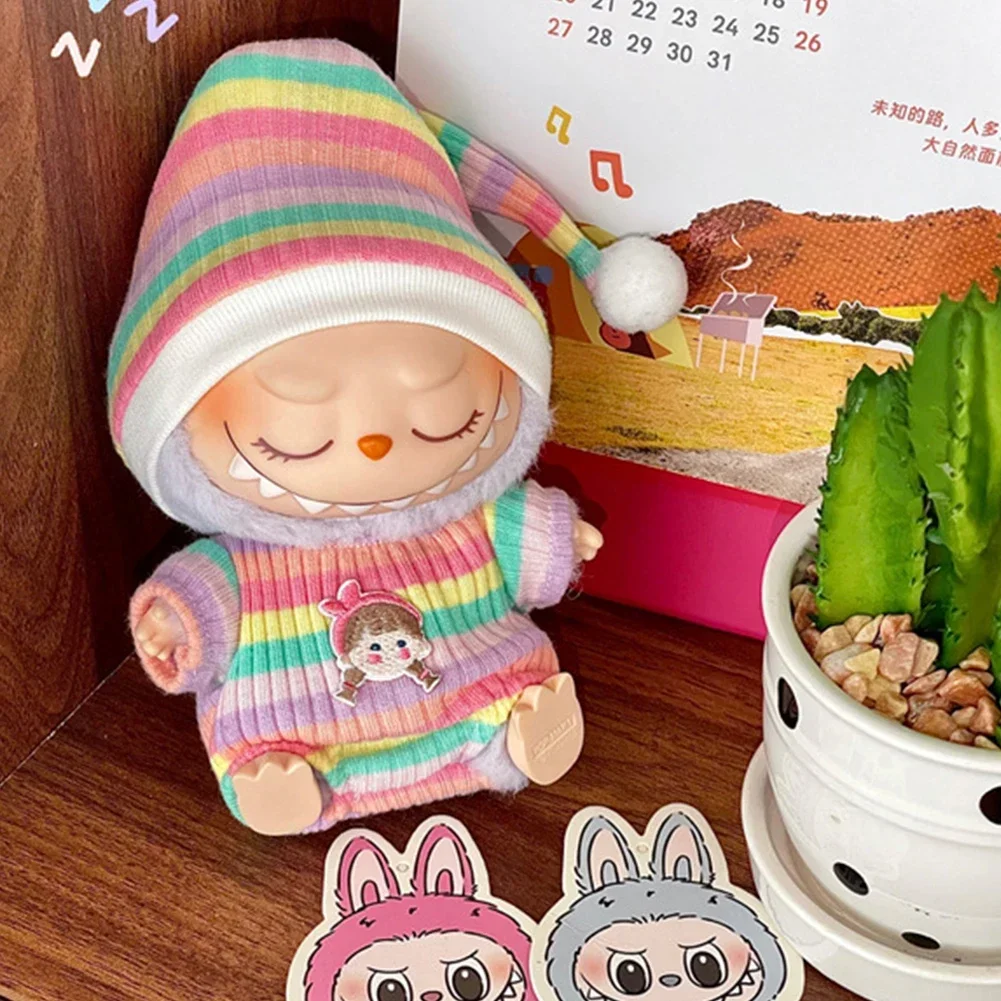 EZ 17cm Mini Doll'S Clothes Outfit Accessories for Labubu Sitting Party V1 V2 Autumn Onesie Hat Set Accessories
