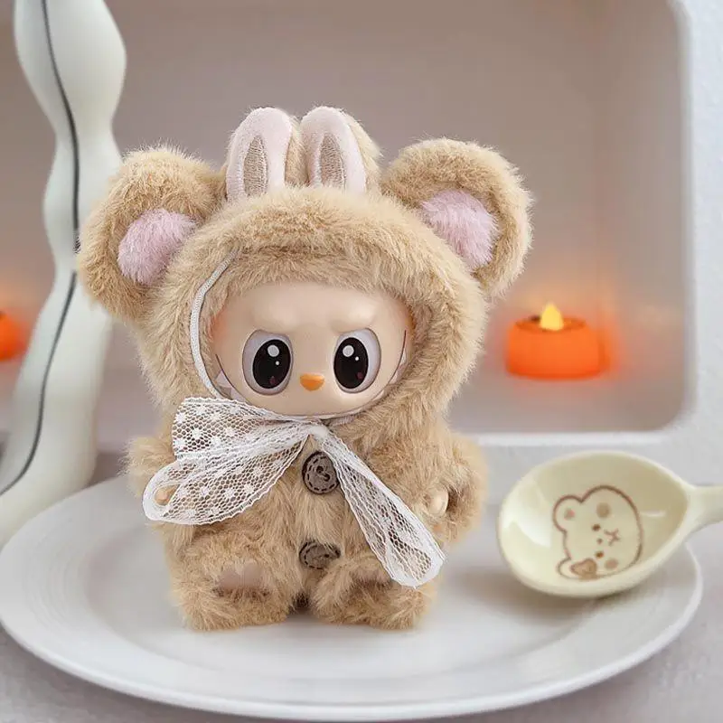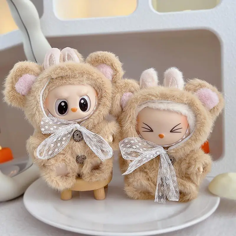 EZ 17cm Mini Plush Doll'S Clothes Outfit Accessories For Korea Kpop Exo Labubu Idol V1 V2 cartoon bear hat button bow Clothing Gift