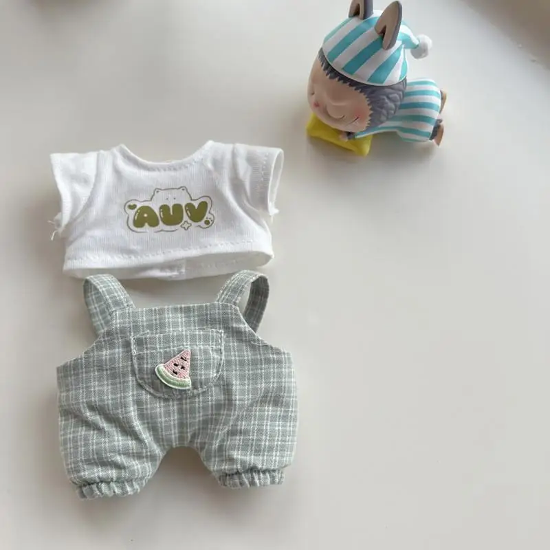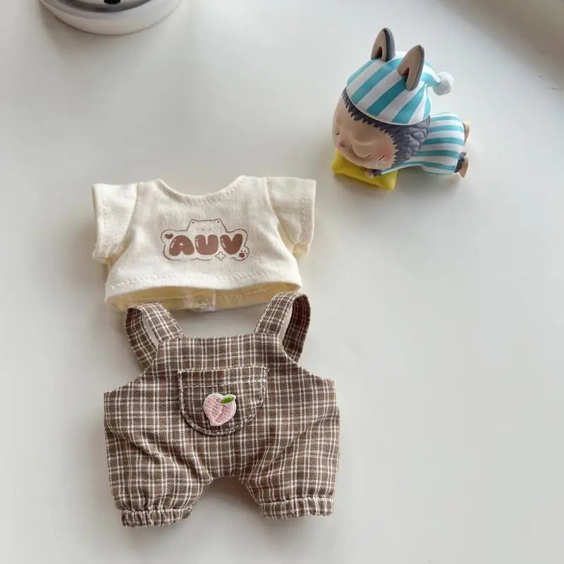 EZ 17cm Mini Plush Doll'S Clothes Outfit Accessories For Korea Kpop Exo Labubu Idol V1 V2 Casual plaid overalls Clothing Gift