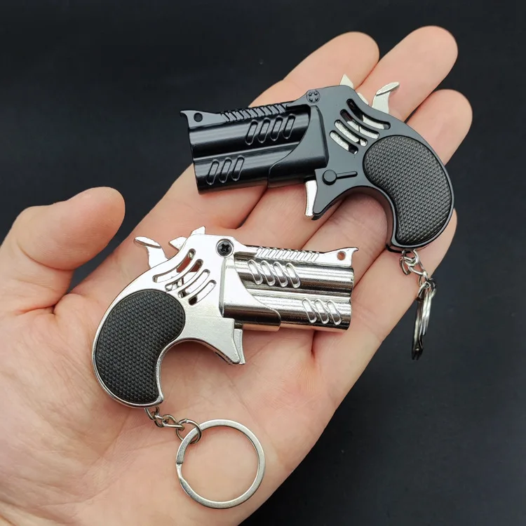 EZ 1Pcs Mini Keychain Metal Rubber Band Gun Game Toy Gun Launcher Children's Simulation Pistol Toys Gifts Pendent