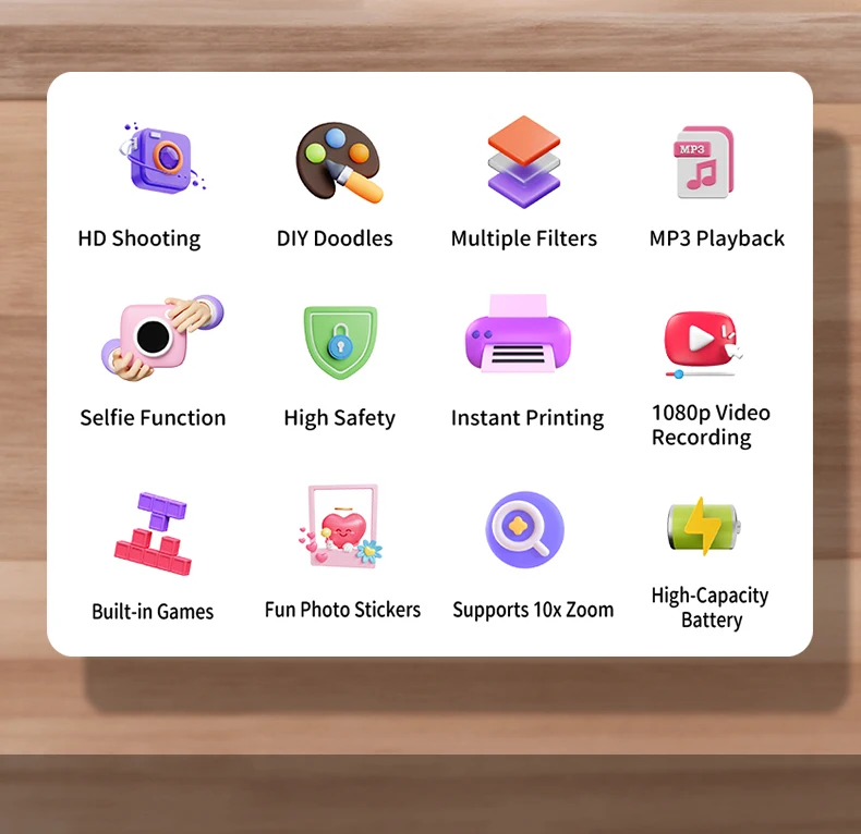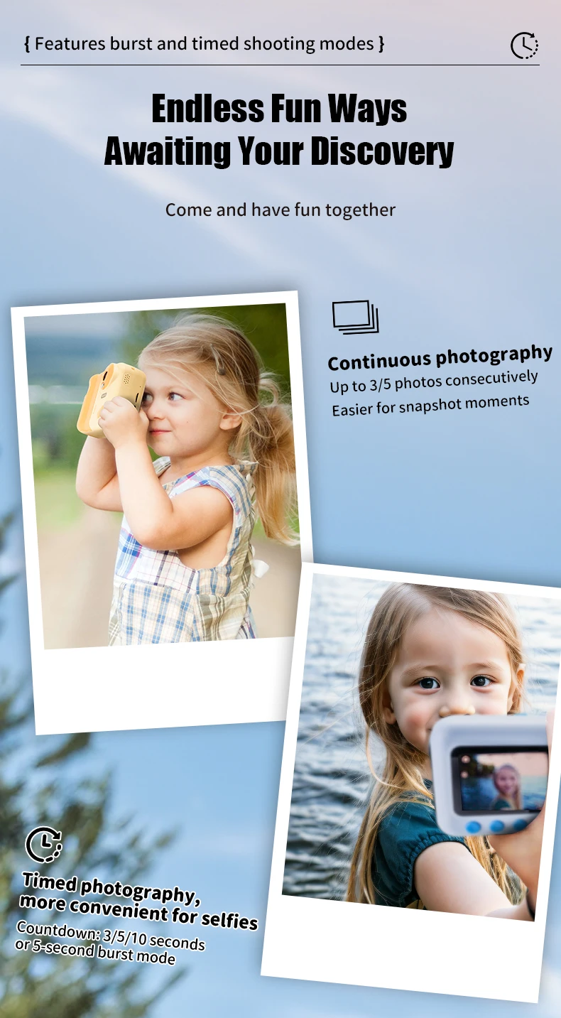 High-definition shooting, you can instantly print photos, with video function, timed photos