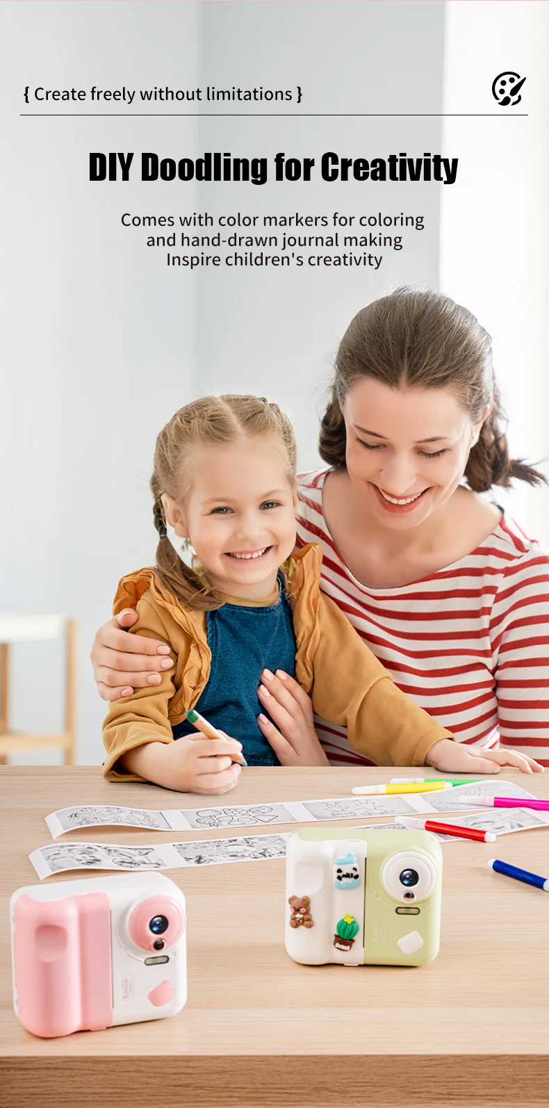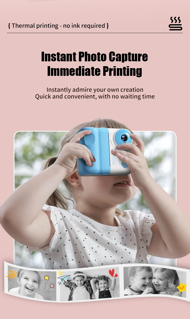 EZ 32G Instant Printing Camera Photography Portable Thermal Digital Kids Toys Girl Recorder 1080P Video Doodles 2.8in Birthday Gift