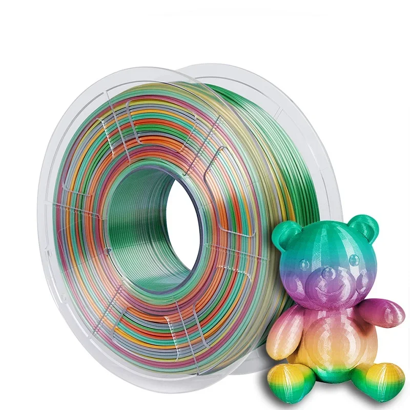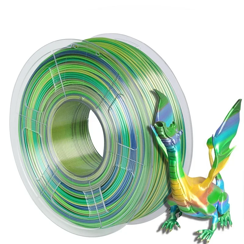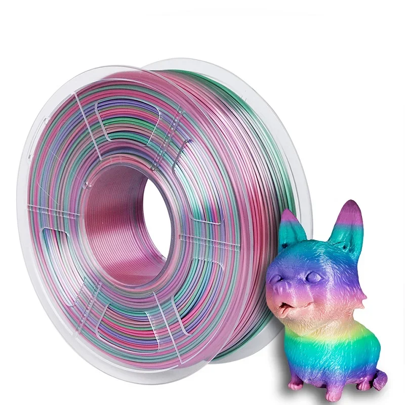 Silk rainbow PLA is unique pla filament that is very smooth and shine.