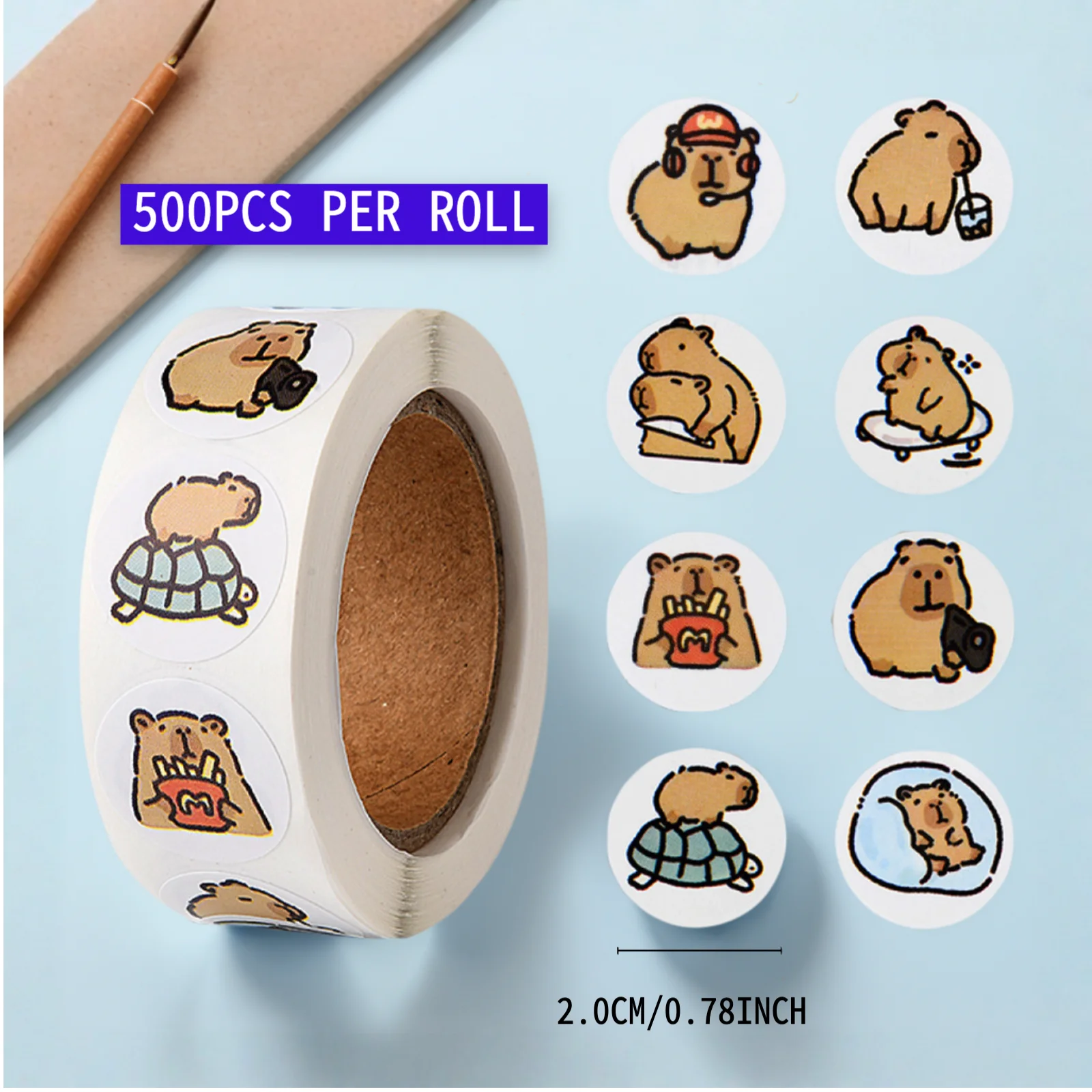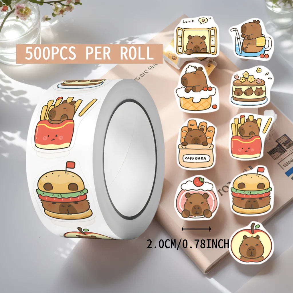 EZ 500 Pcs Capybara Stickers Roll - Waterproof PVC Animal & Food Decals for Laptop, Water Bottle, Phone
