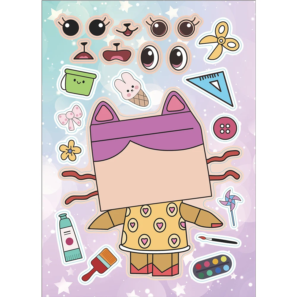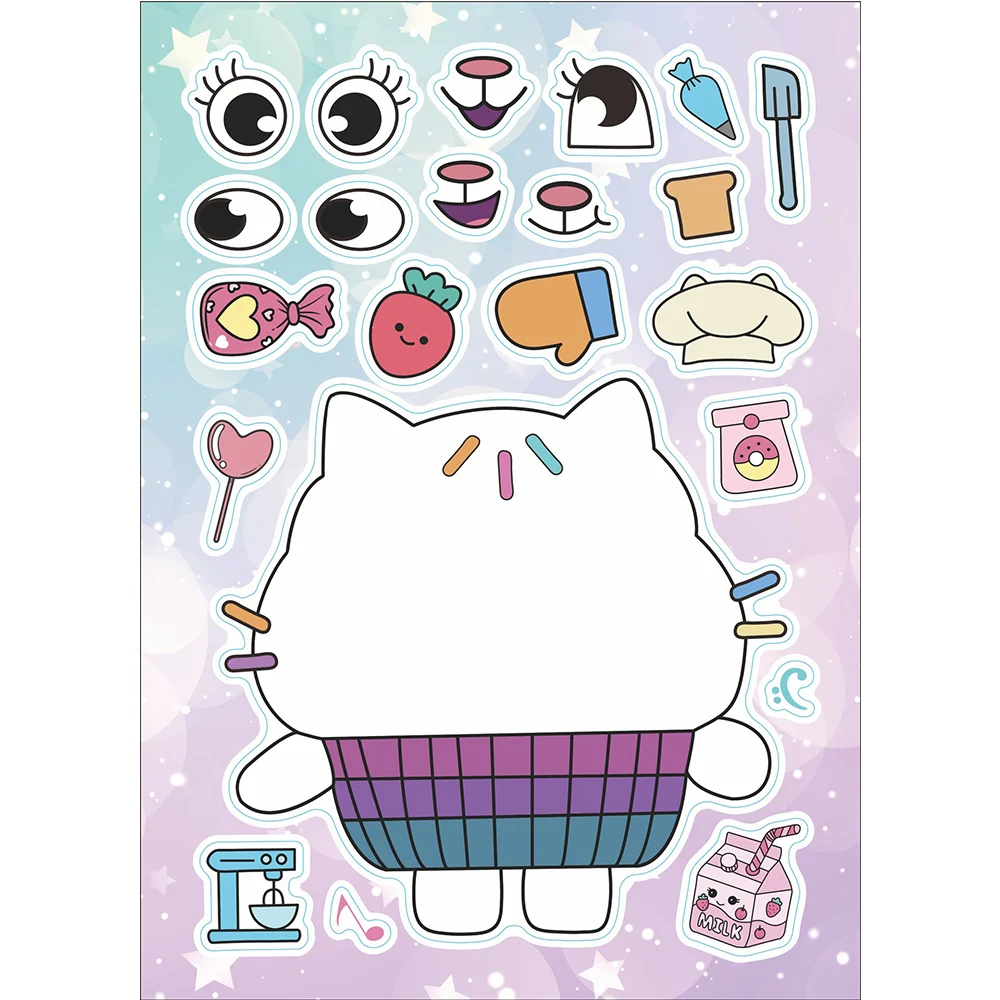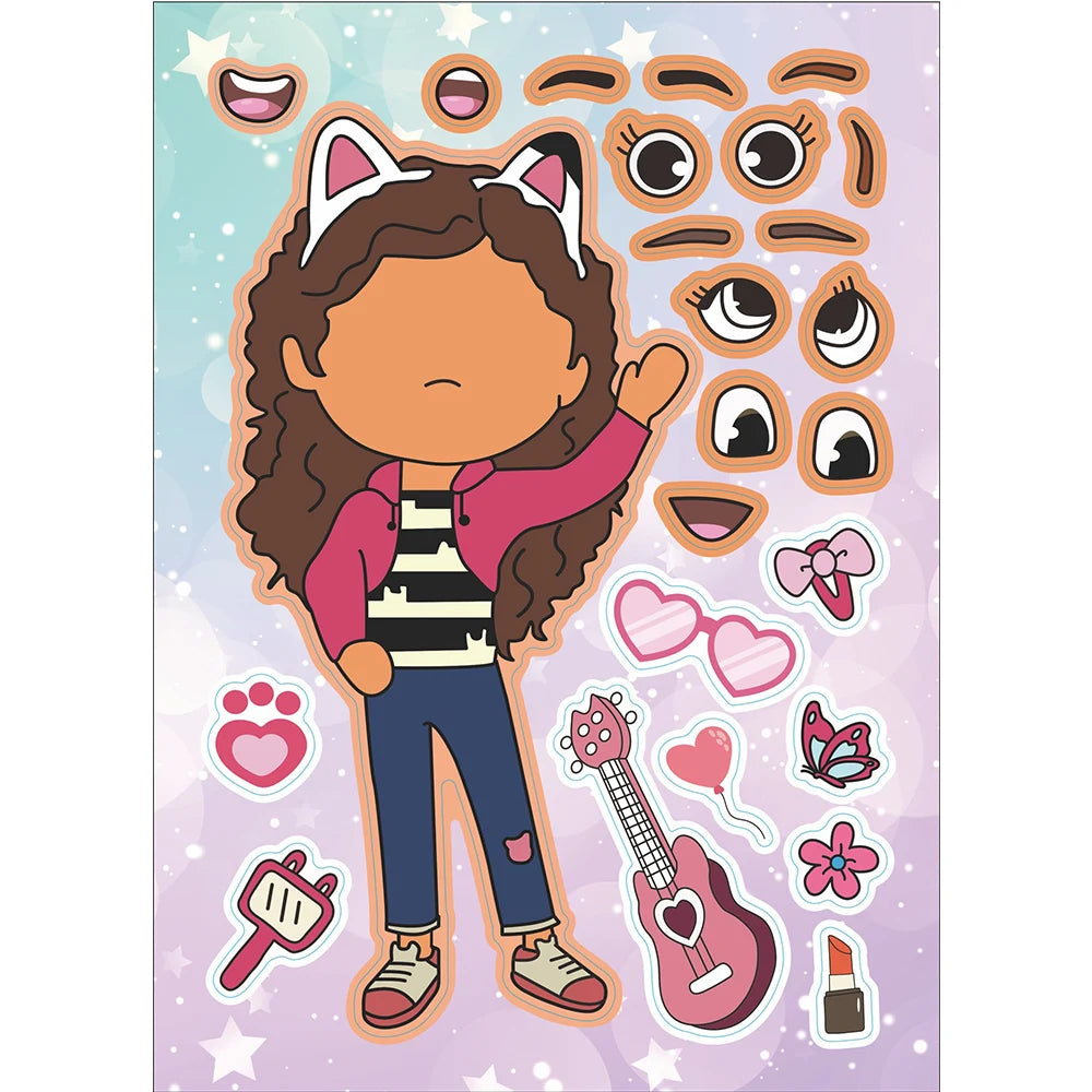 EZ 6/12Sheets Gabby's Dollhouse Make A Face Puzzle Stickers Kids Make Your Own DIY Game Children Cartoon Jigsaw Education Toys Gift