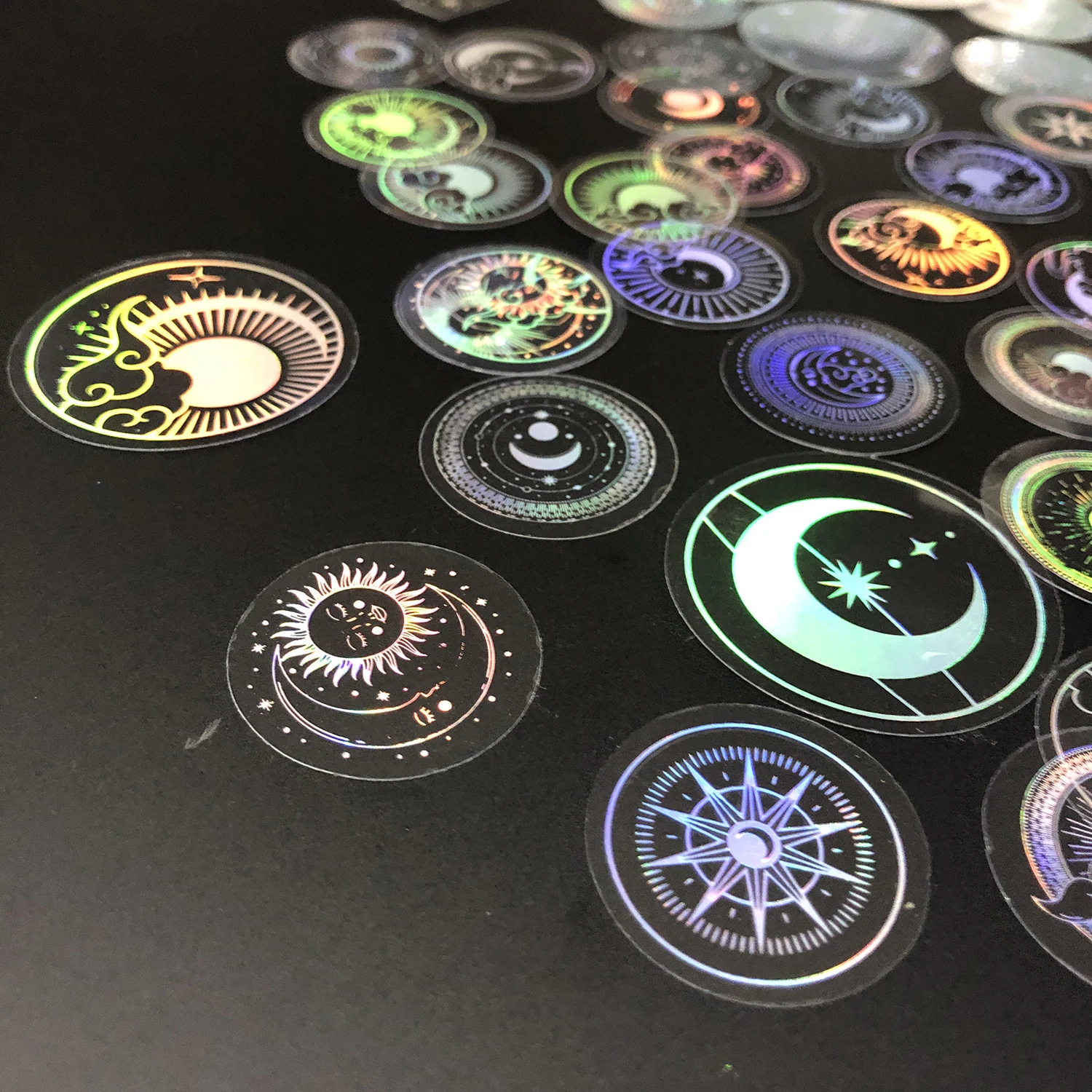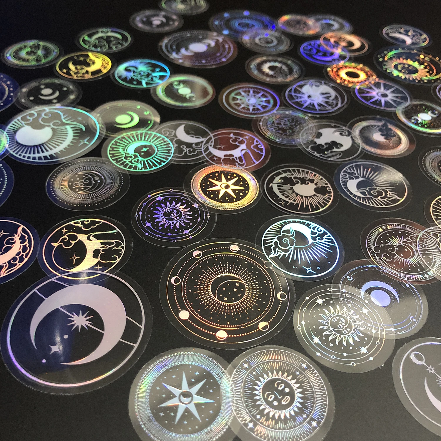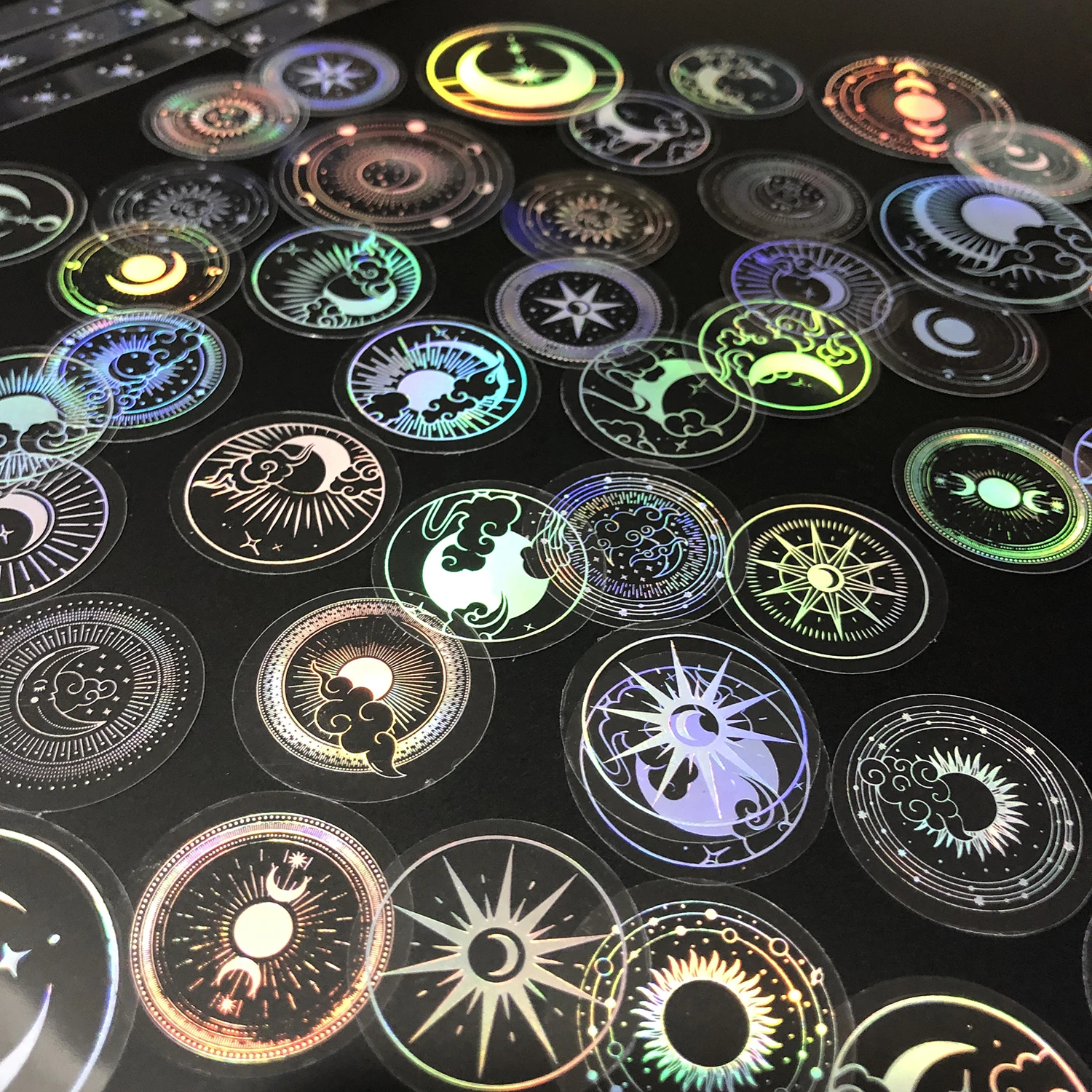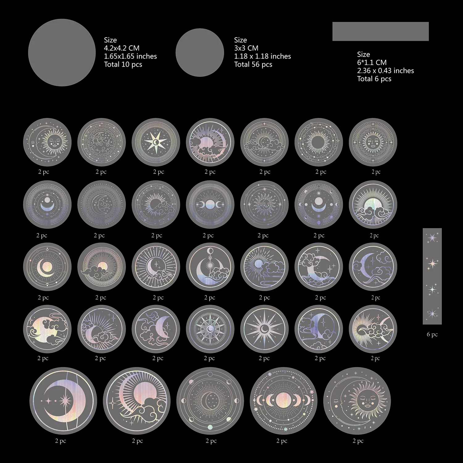 EZ 70 pcs Glitter Gold PET Adhesive Stickers Waterproof Transparent Label: SUN MOON Stars etc