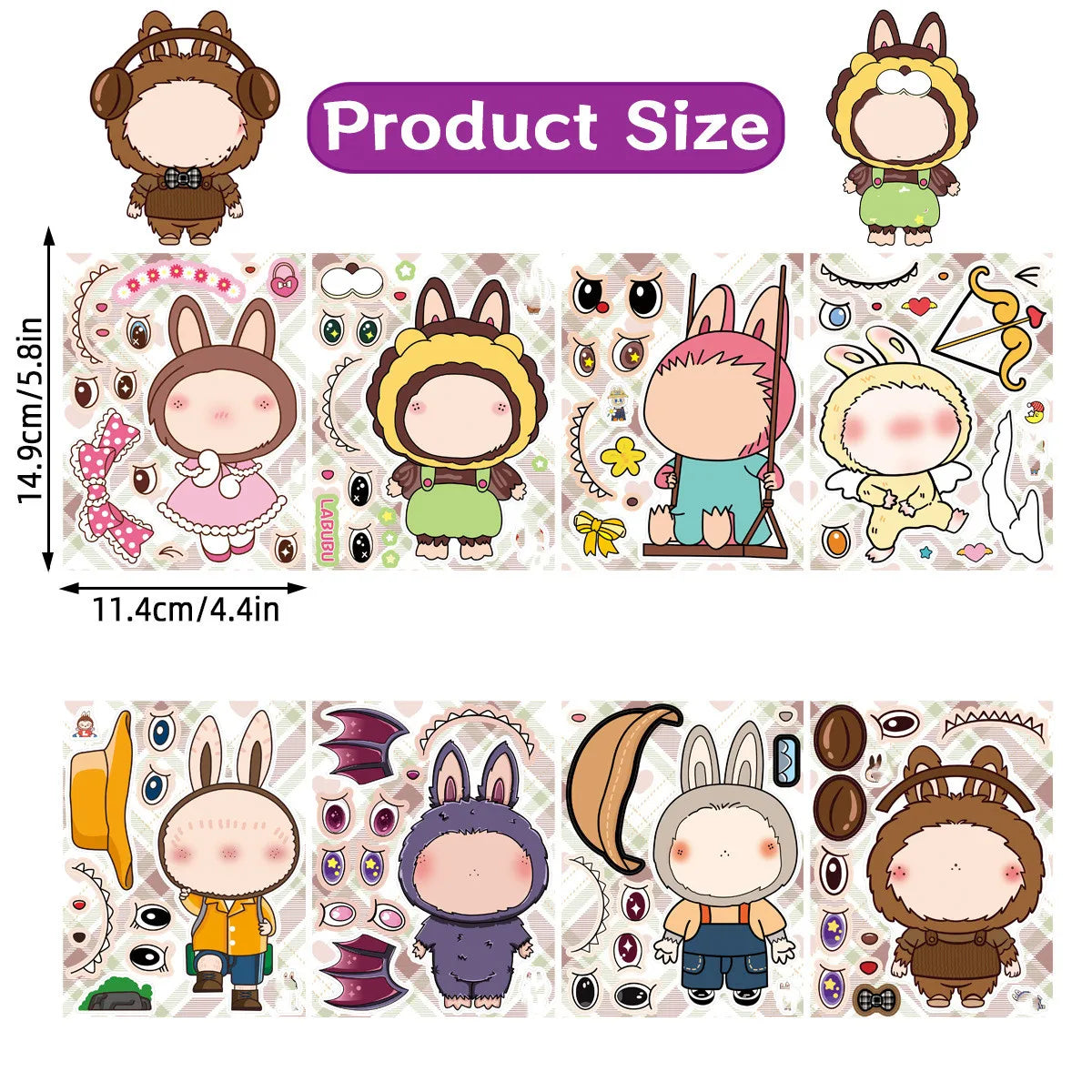 EZ 8Sheets Cartoon Monster Doll Stickers Make-A-Face DIY Assembly Fun Children's Puzzle Account Material Crybaby Stickers