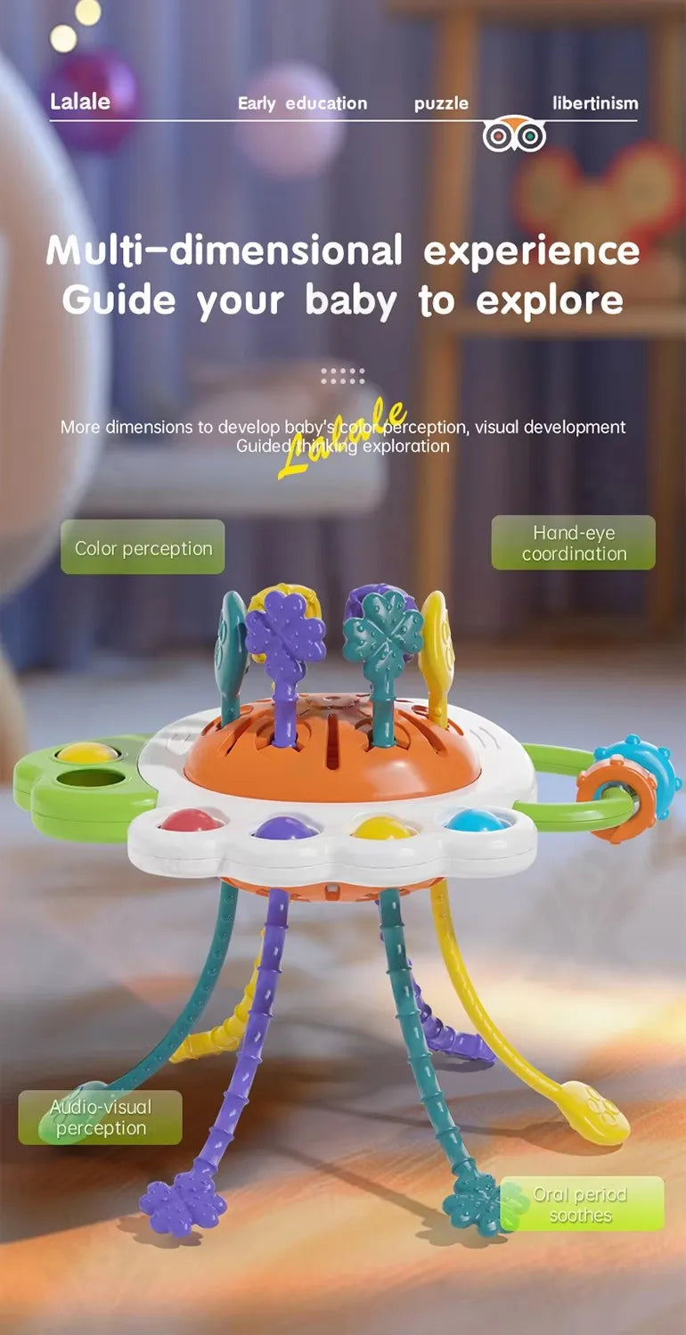 EZ Activity Development Pull String Toys Silicone Teething Rattle Educational Learning Toy Baby Sensory Montessori Toys 6 12 Months