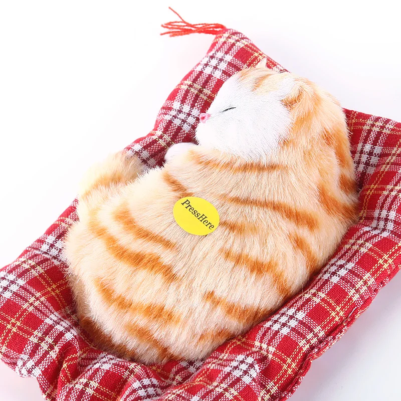 EZ Brand New Simulation Animal Doll Plush Sleeping Cats Toy With Cushion Can Speak Out with Sound Kids Gift Stuffed Desk Ornament