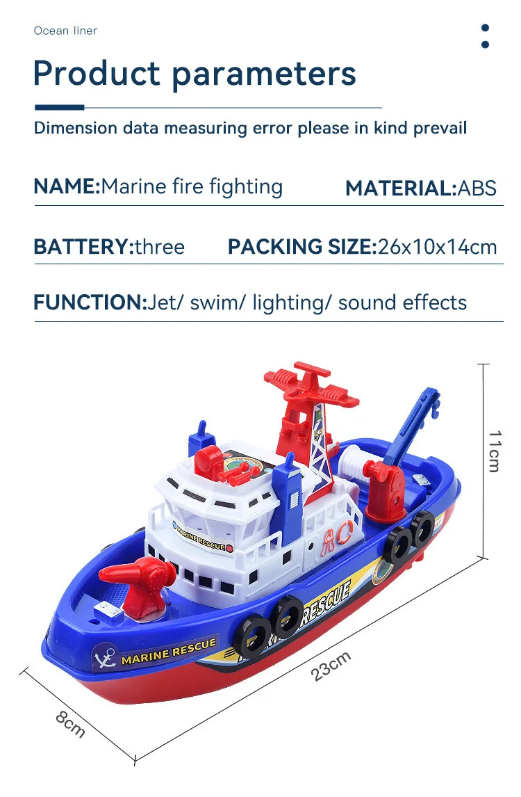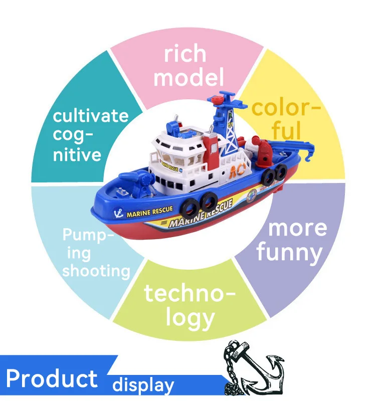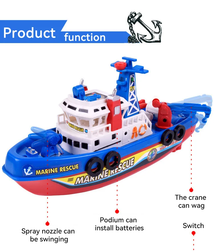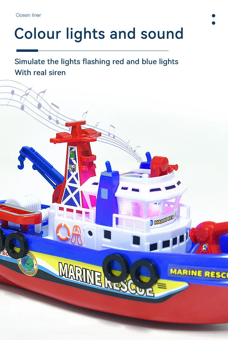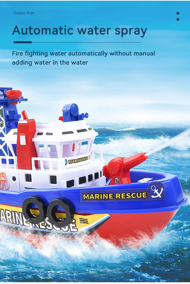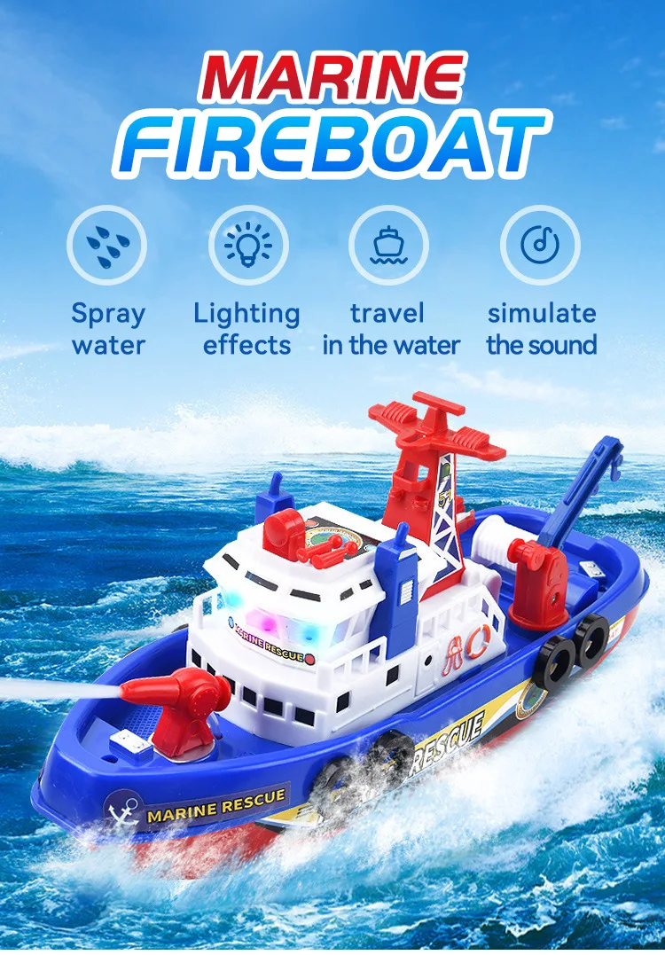EZ Children's Sprinkler Electric Boat Bathing Toy Rescue Model Fire Boat LED 3-6 Year Old Puzzle Toy with Light and Music