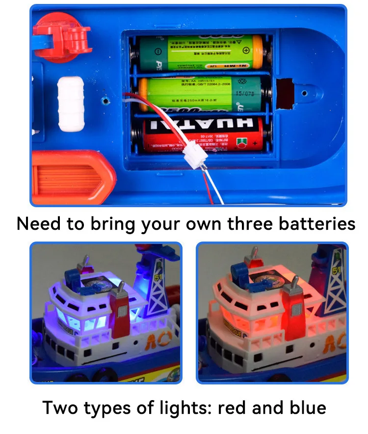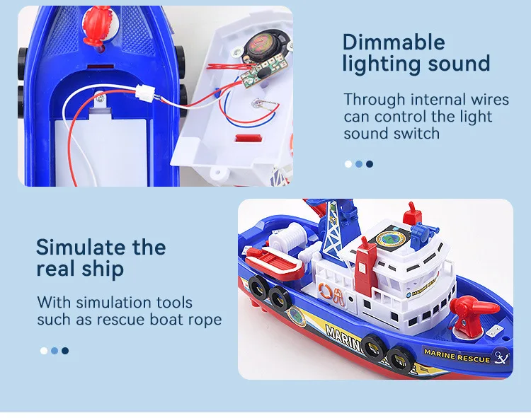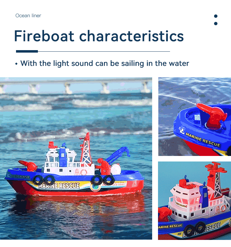 The boat can flash red and blue lights and send out for police siren, just like a tiny real fire boat