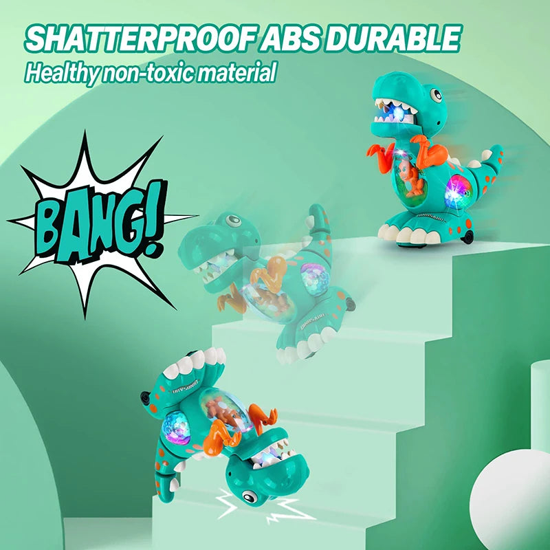 ��Musical Toys with Lighting: This baby toy is designed with multiple light sources. The rotating light balls on both sides of the dinosaur's body emit a dazzling light projection. The mouth opens and closes to emit lights, and the small dinosaur on its belly swings left and right with the lights and music. SENCU baby toys attract babies to chase while developing children's sense of music and rhythm.