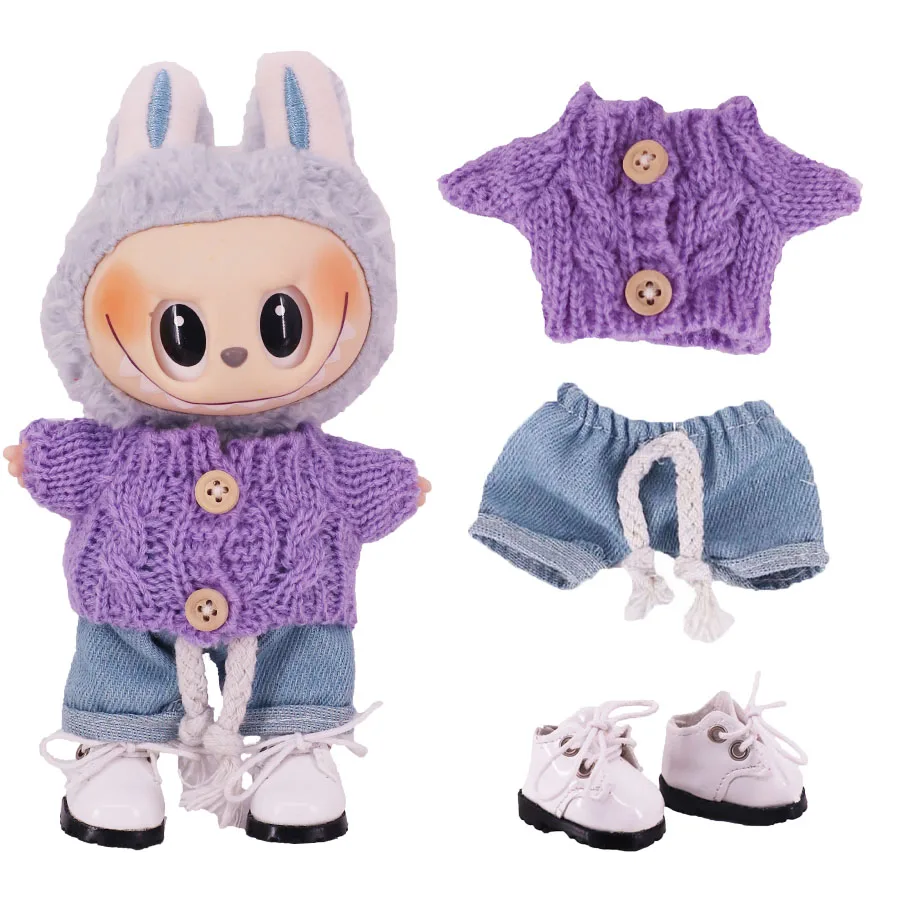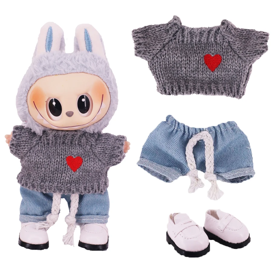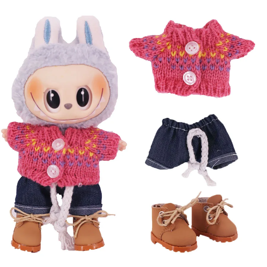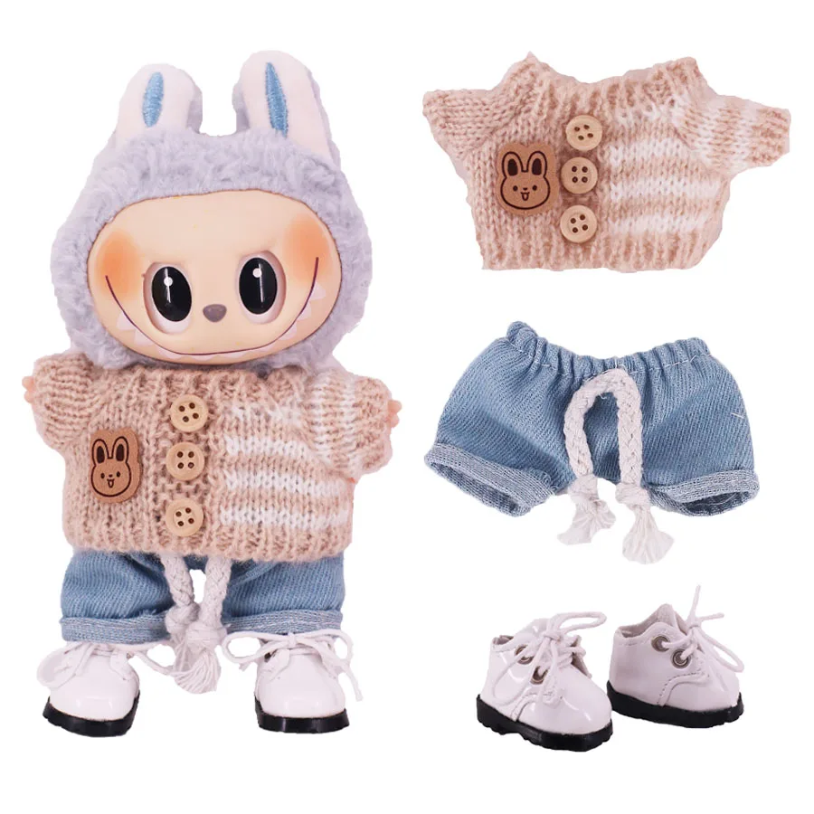 EZ Doll Sweater Pants Shoes set For labubu Clothes 17 cm Doll Accessories,Toys For Girls,Christmas Festival Birthday Present