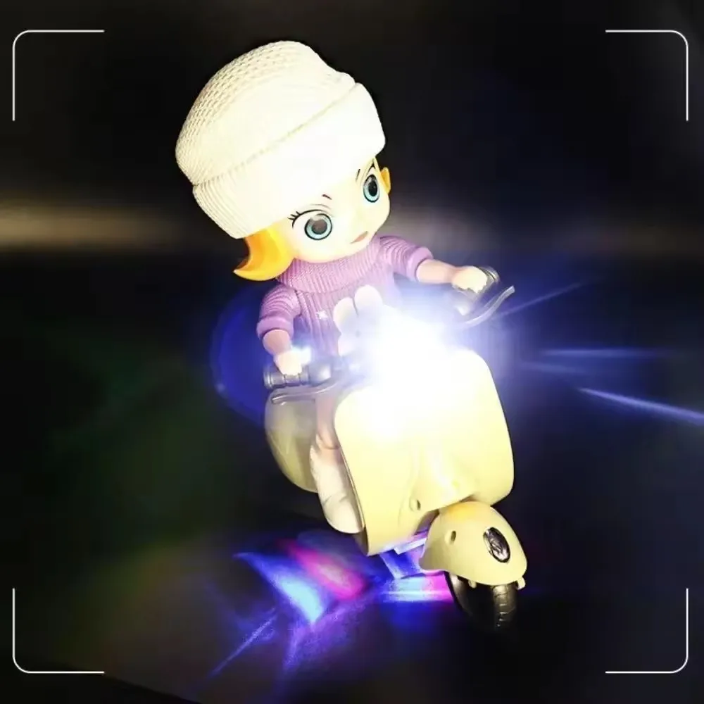 Lap doll, Lap toy, motorcycle, Lap skateboard, 360 degree rotating toy, movable light, creative music, acrobatic mini doll, motorcycle accessories, fan doll, girl accessories, children's gift toys