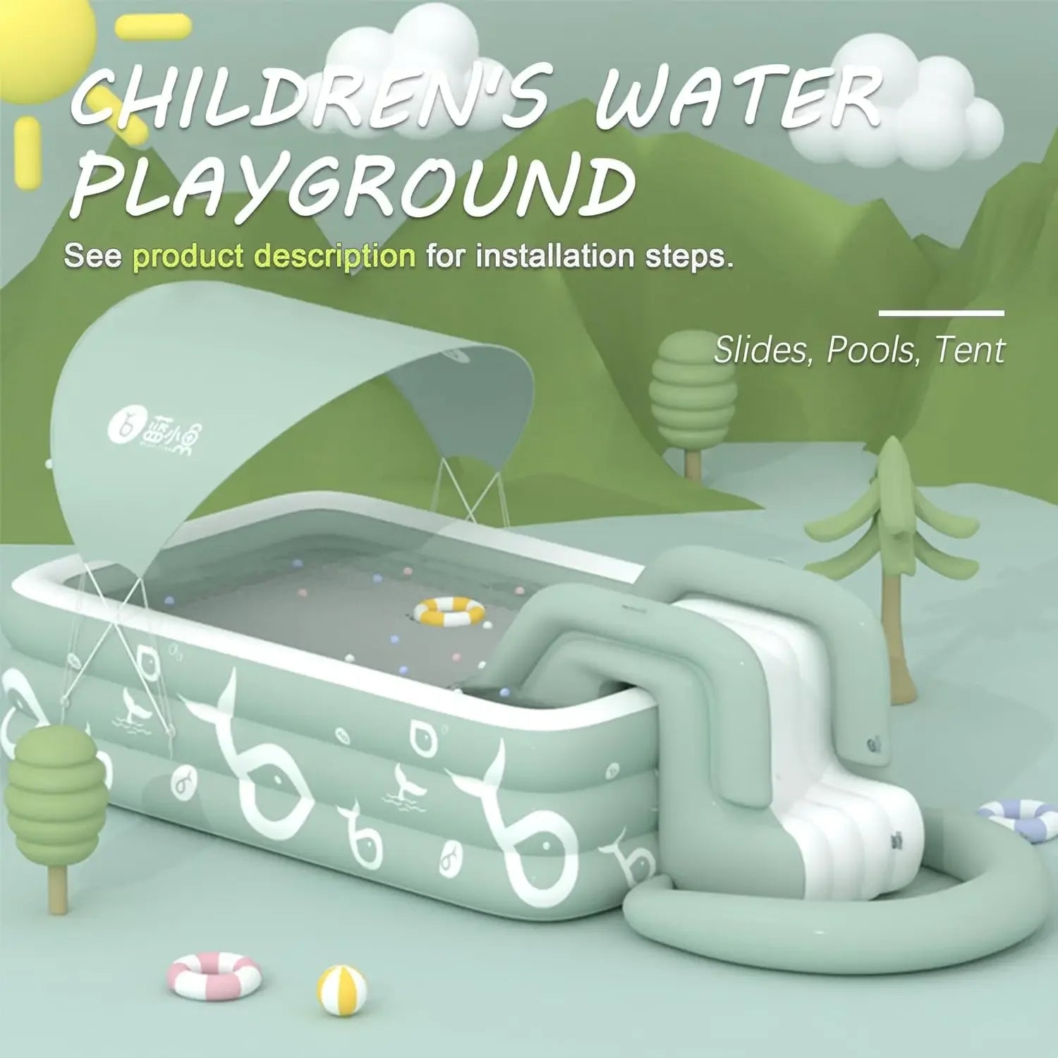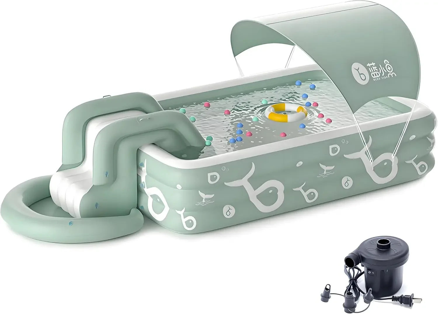 EZ Inflatable Pool with Canopy and Slide,Large Inflatable Swimming Pool for Persons,Family Pool for Backyard, Outdoor