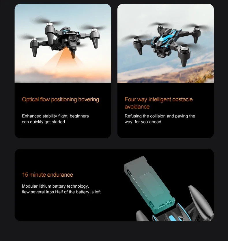 6. Hand gesture photography, optical flow positioning, brushless motor, ultra long endurance, obstacle avoidance head assembly, which can stop when encountering obstacles without colliding with them