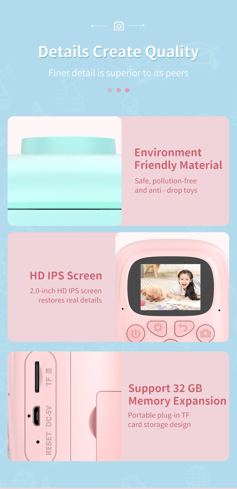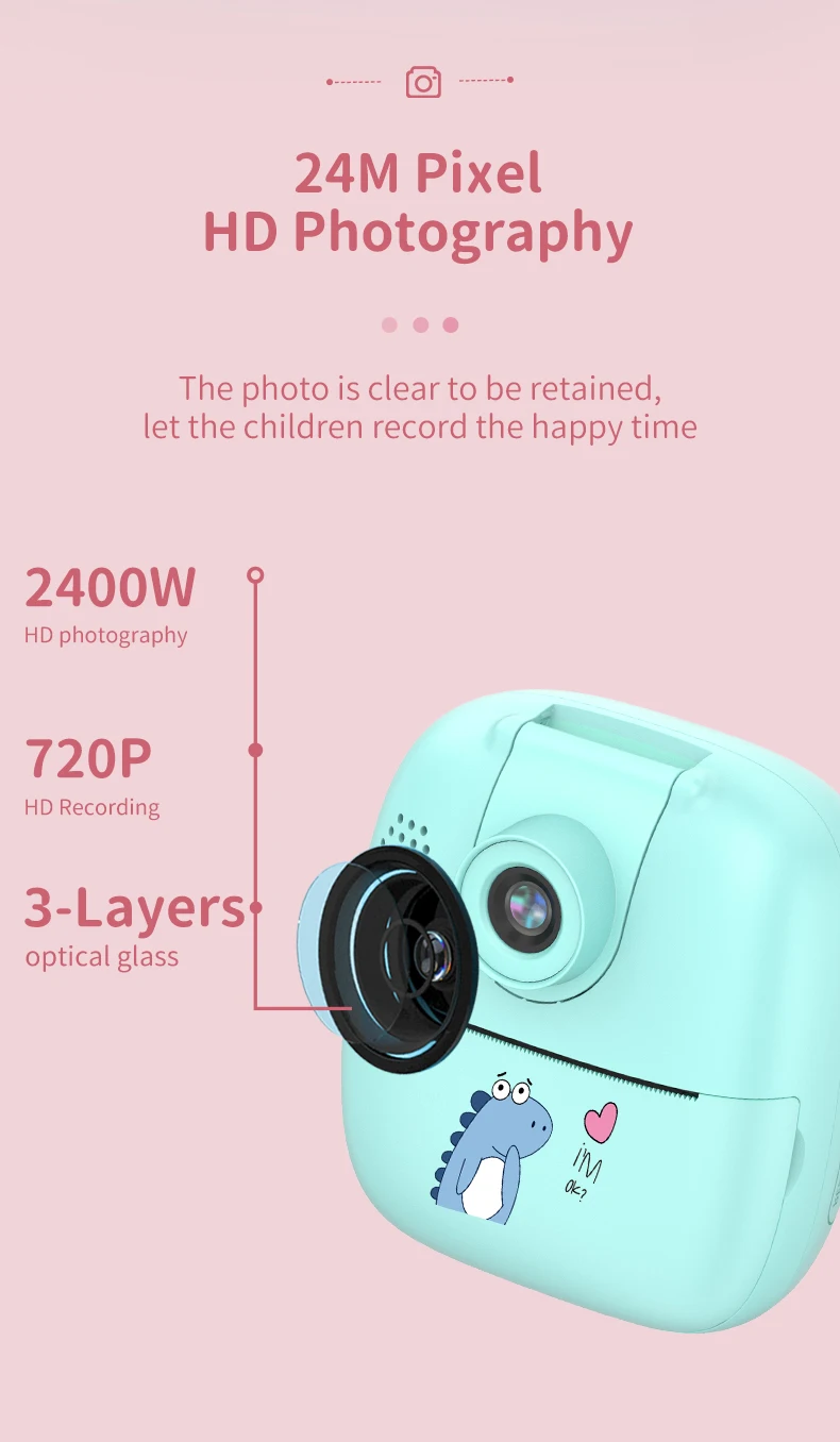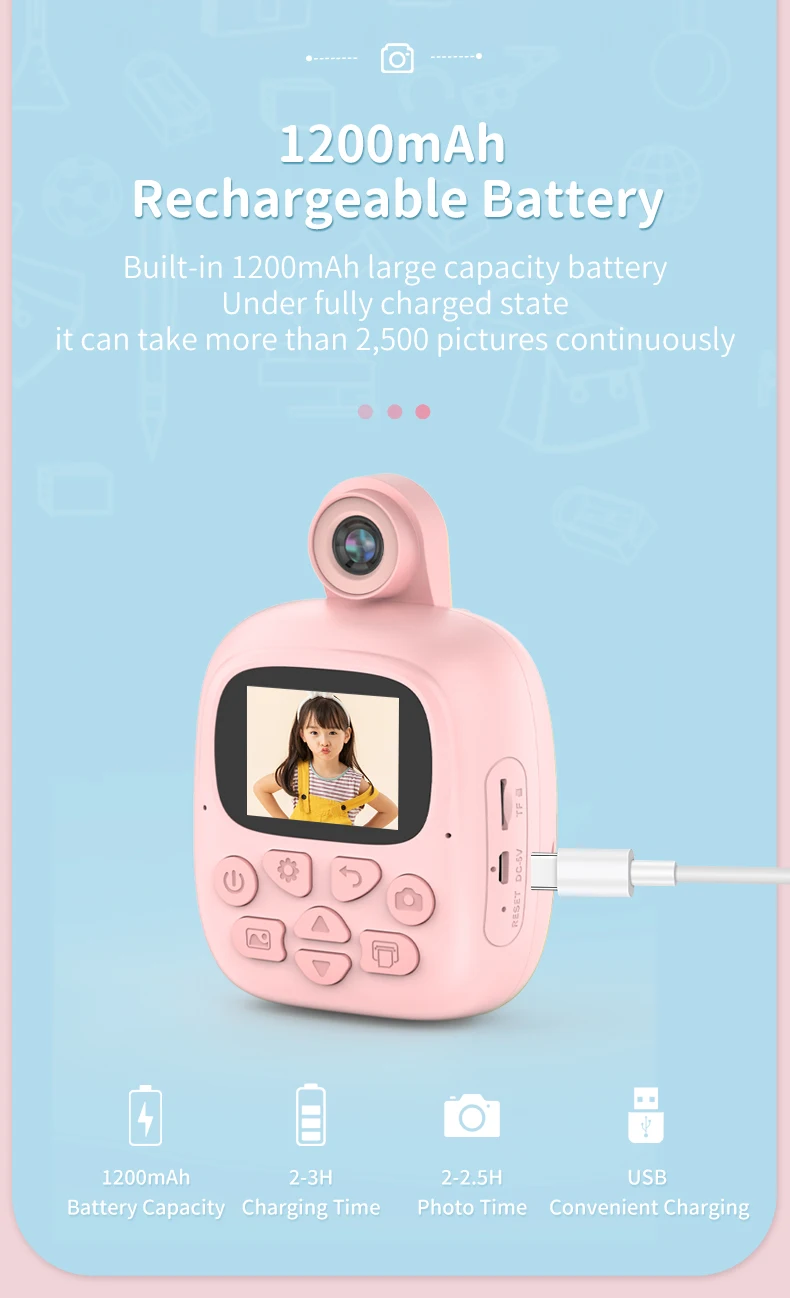 Printer and Camera: The 2 in 1 multifunctional camera with 2.0in IPS pocket is not only a digital camera but also a thermal printer.