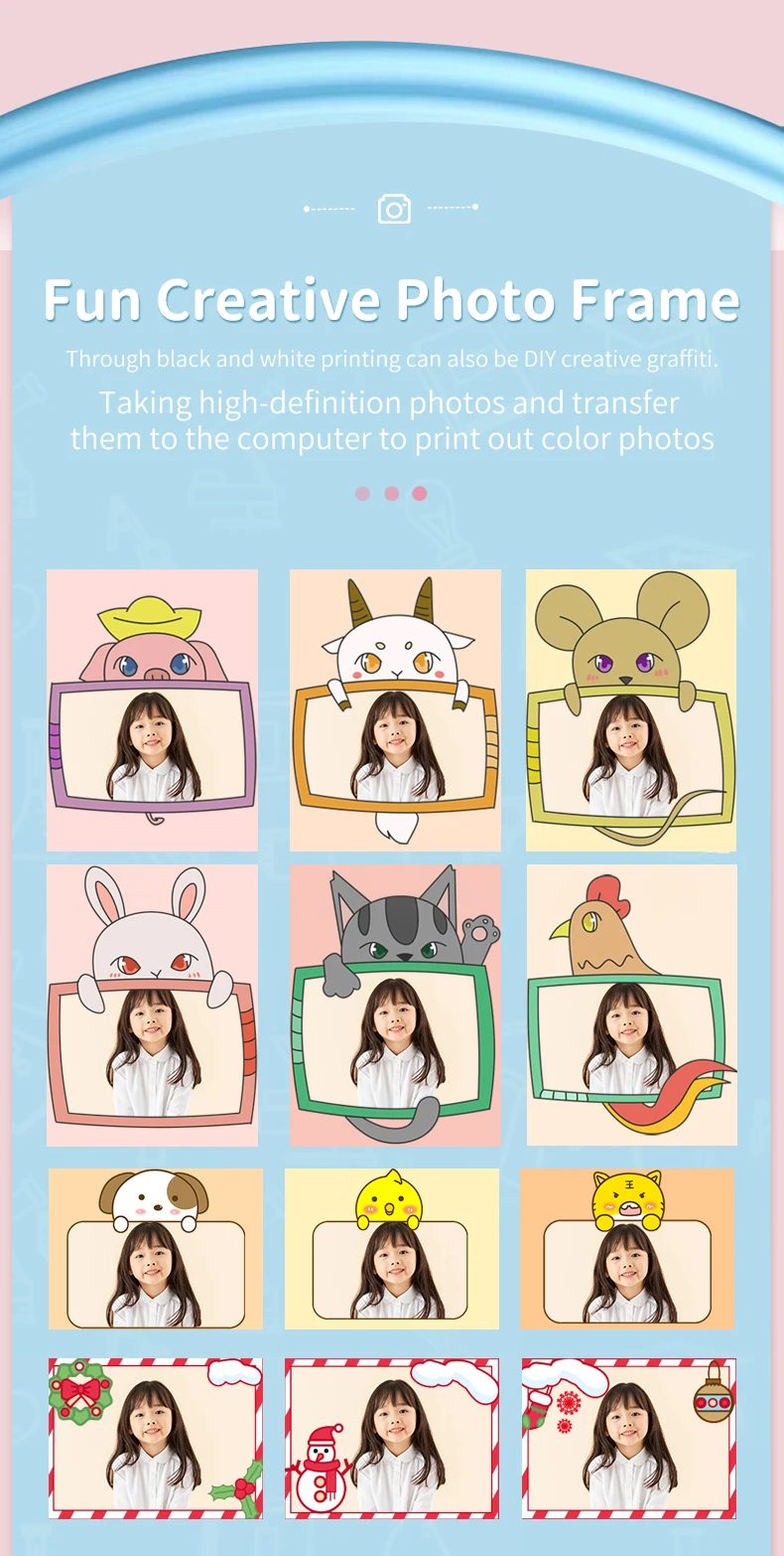 EZ Kids Digital Camera Portable Selfie cartoon Camera multi-functions Mini Thermal Printer Camera Video Educational Birthday Gifts