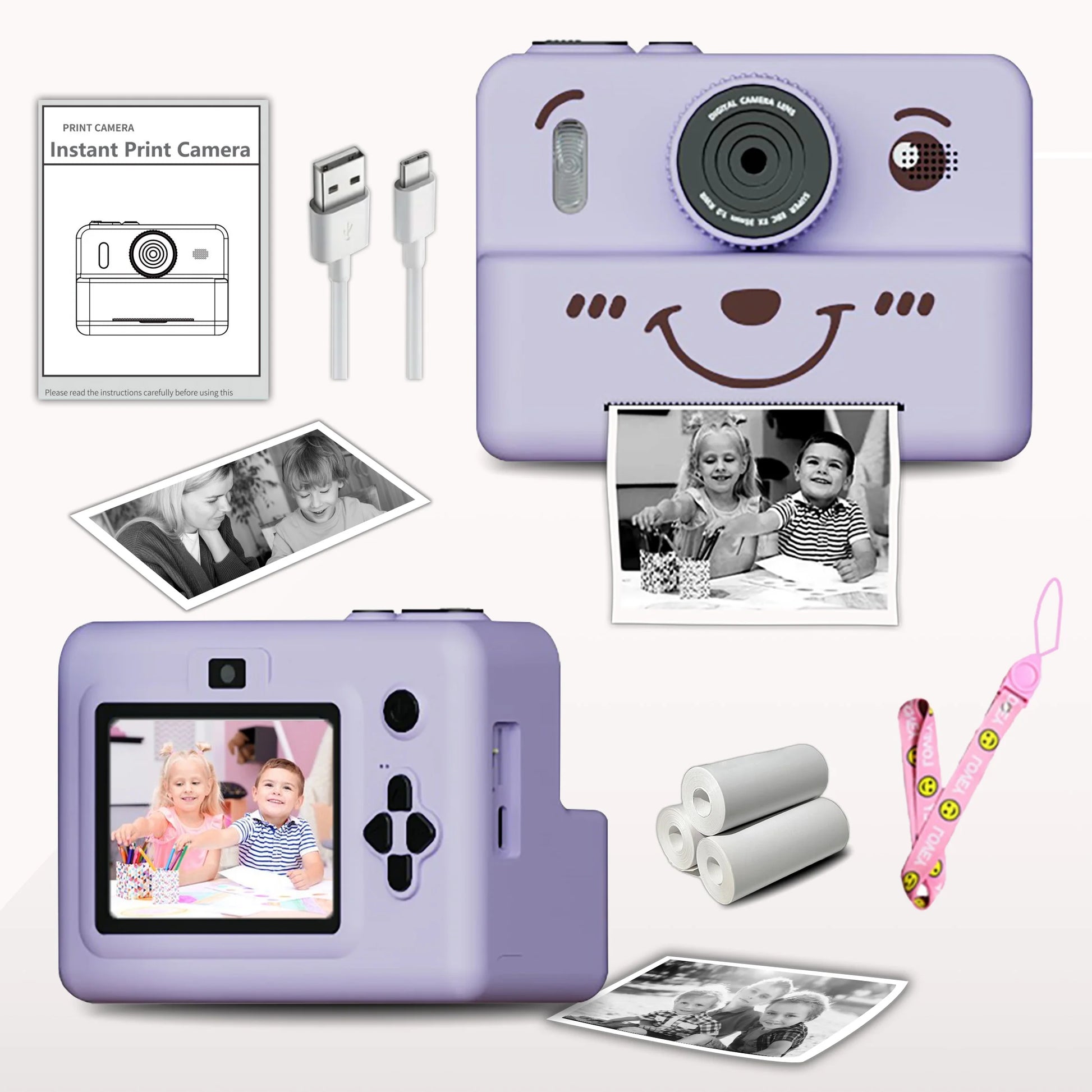 EZ kids instant camera with 3 rolls thermal paper photo&video&games 1080p HD screen 1500mAh lithium battery gift for boys&girls
