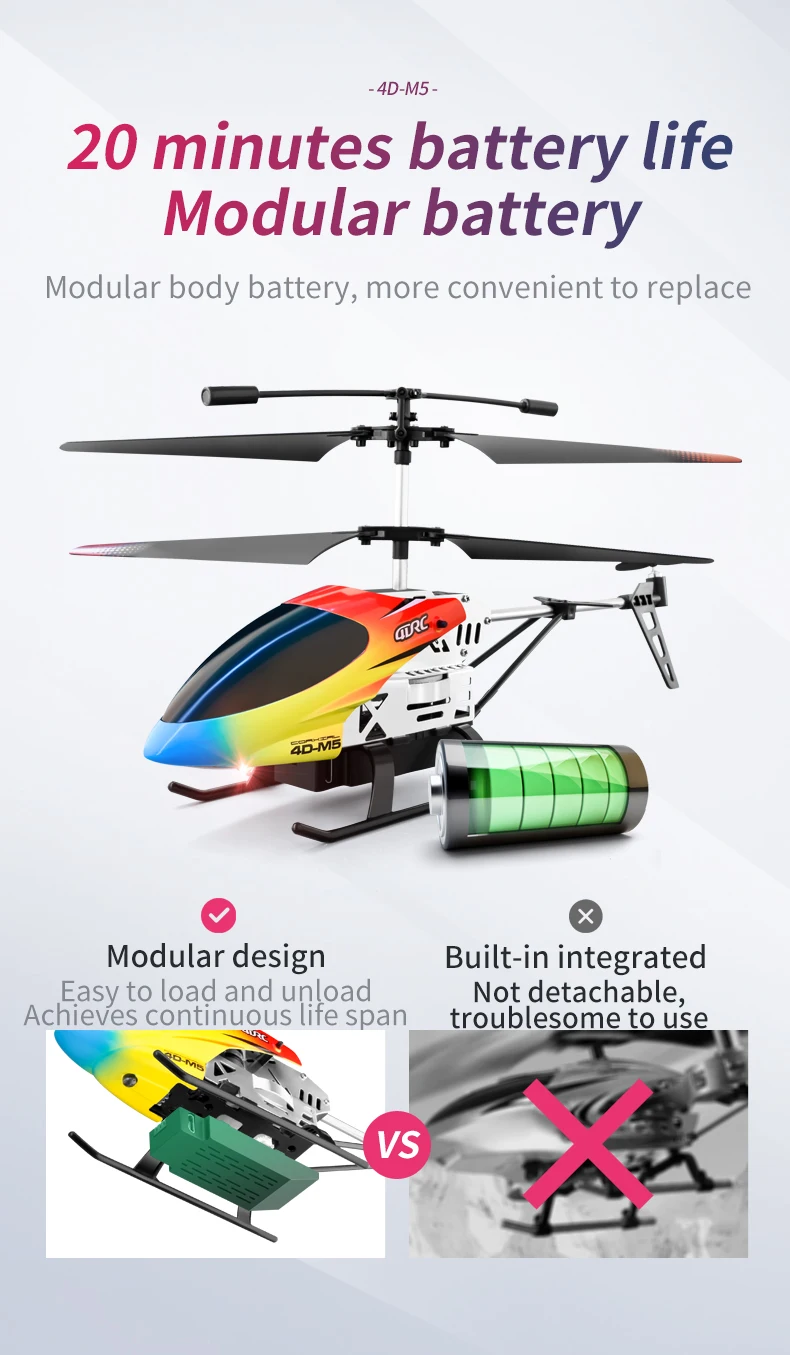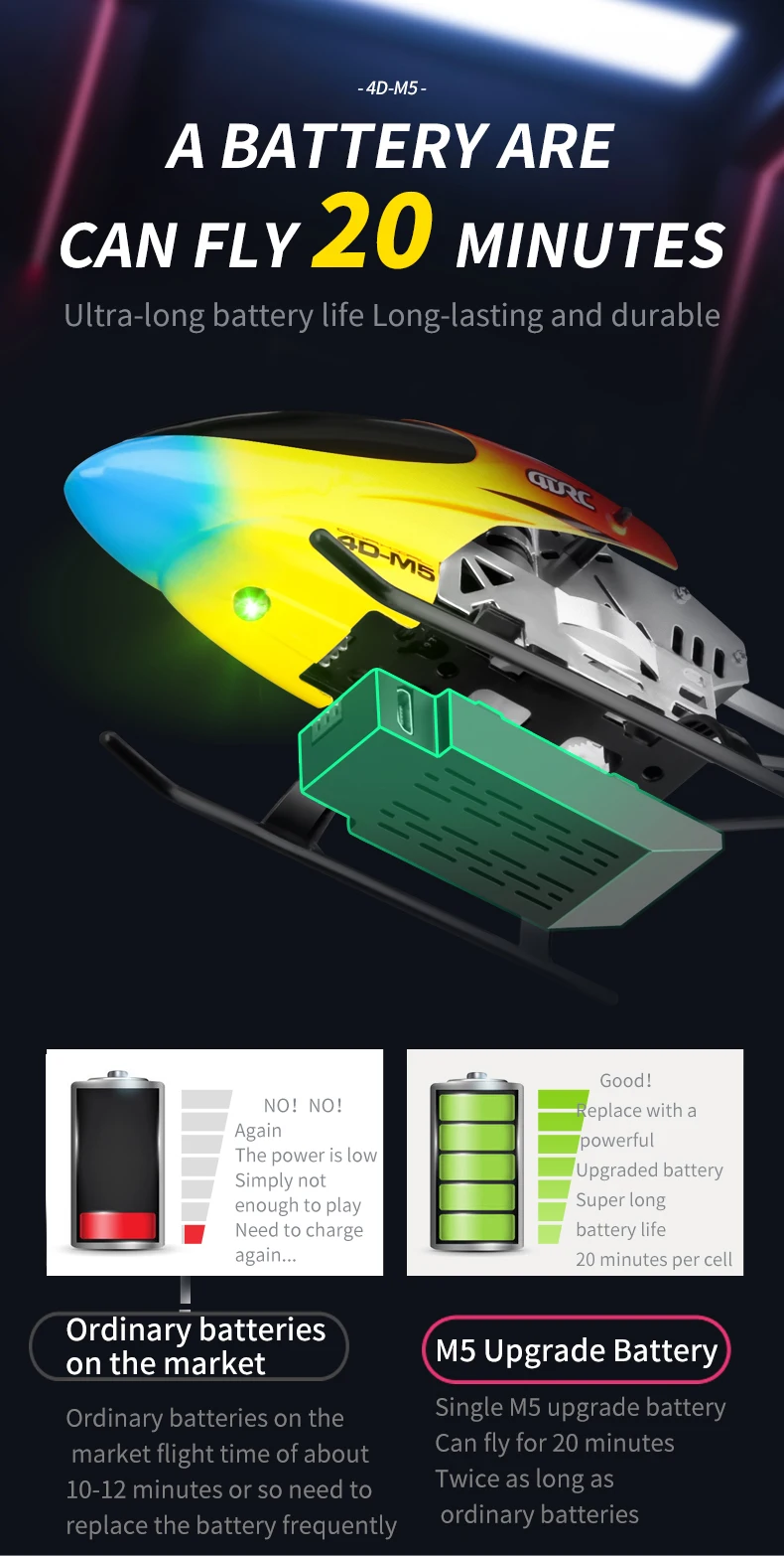 • Juguete durable del abejón del aeroplano :Hecho con el plástico durable, el helicóptero teledirigido M5 se construye para durar y puede soportar aterrizajes ásperos.