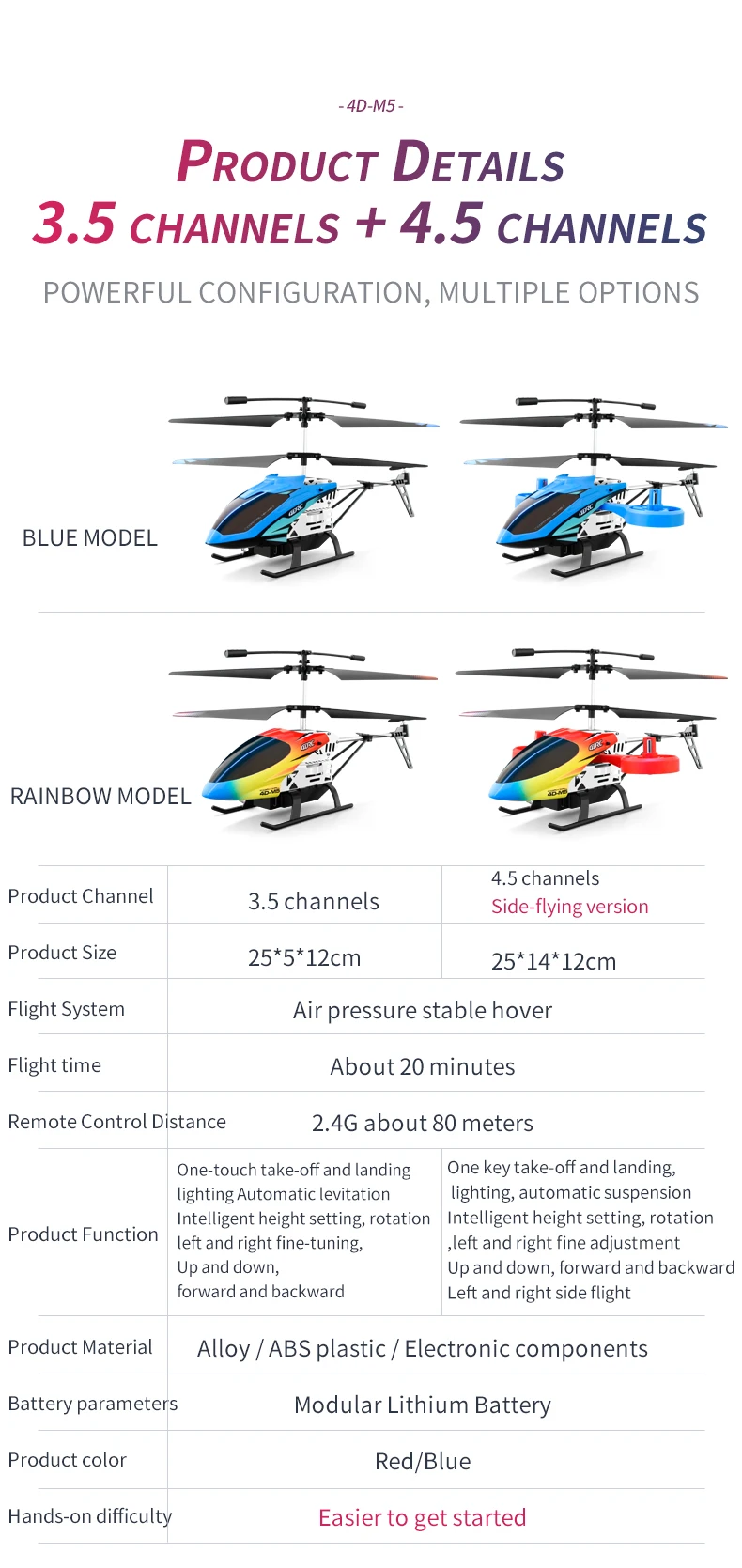 Helicóptero de Control Remoto M5 Altitud Hold 3,5 Canales RC Helicópteros con Giroscopio y Luz LED Durable Avión Drone Juguete regalo