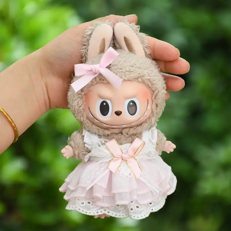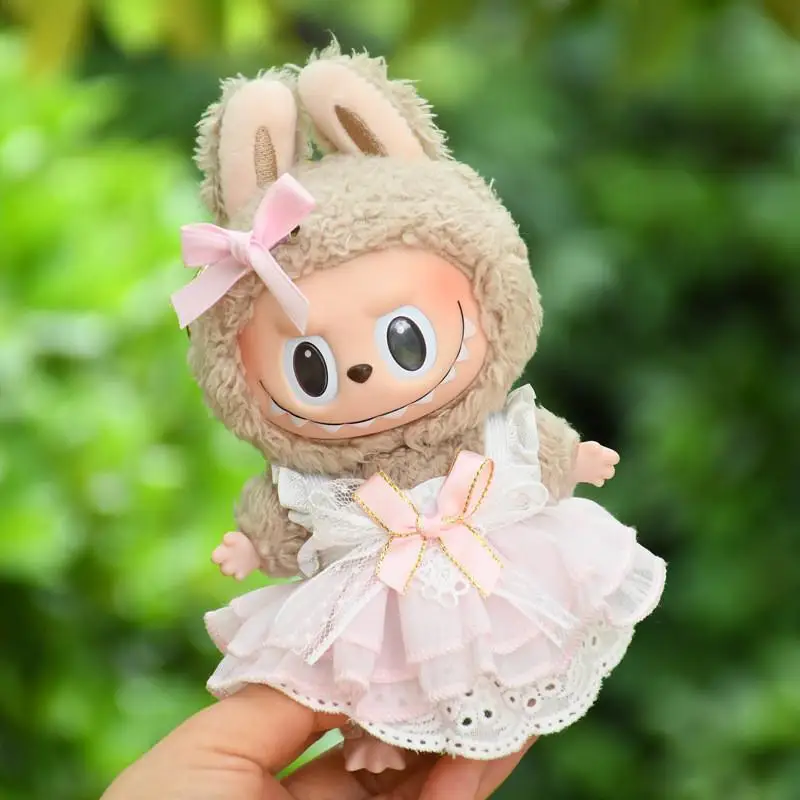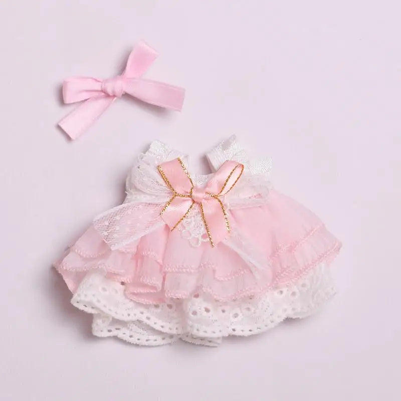 EZ Mini Plush Doll'S Clothes Outfit Accessories For Korea Kpop Exo Labubu V1 V2 Idol pink bow gauze skirt Clothing Gift