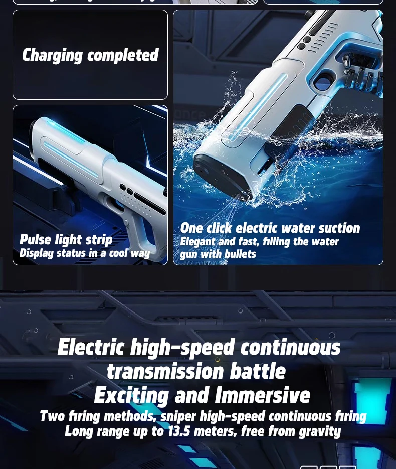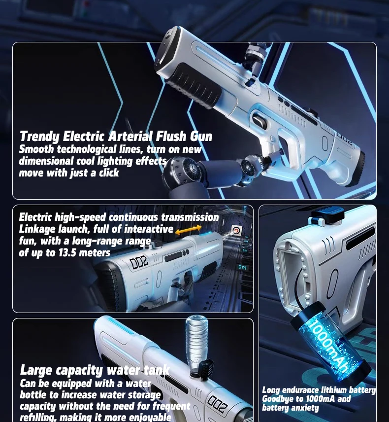 EZ New Pulse Electric Continuous Shooting Water Gun Powerful Water Spray Light Large Capacity Self-priming Children's Summer Toy
