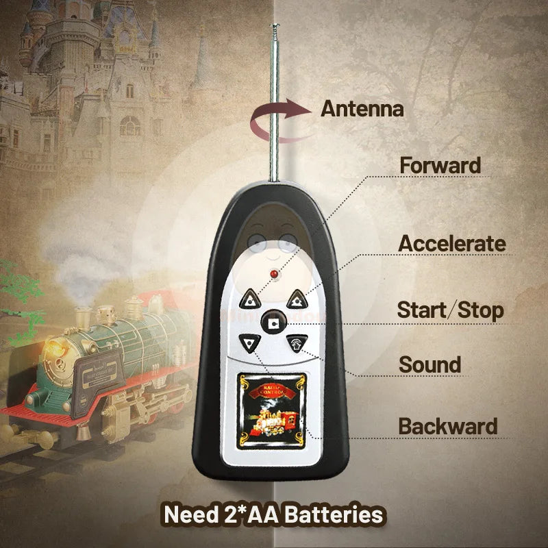 EZ Remote Control Track Train Car Classical Simulation Water Steam Electric Railway Set Christmas Gift Educational Toy For Children