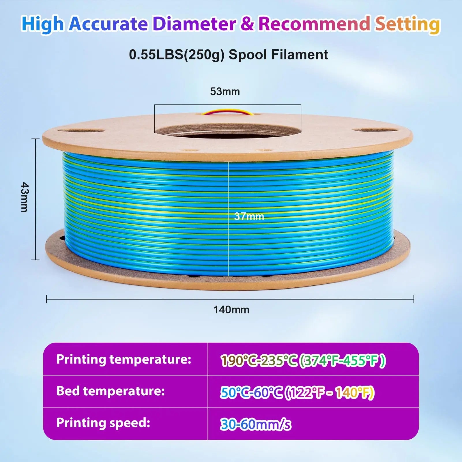 EZ Silk PLA 3D Printer Filament Triple Color Silk PLA Filament 1.75mm 3D Printing Filament Fit Most FDM Printers, 250g Spool(0.55lb